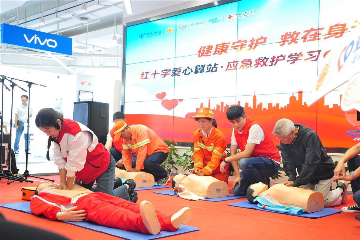 10月9日,配置全新的急救设备和应急救护服务的中国电信武汉洪山广场营业厅焕然一新,湖北首个“红十字爱心翼站·应急救护学习e站”正式在此运营。