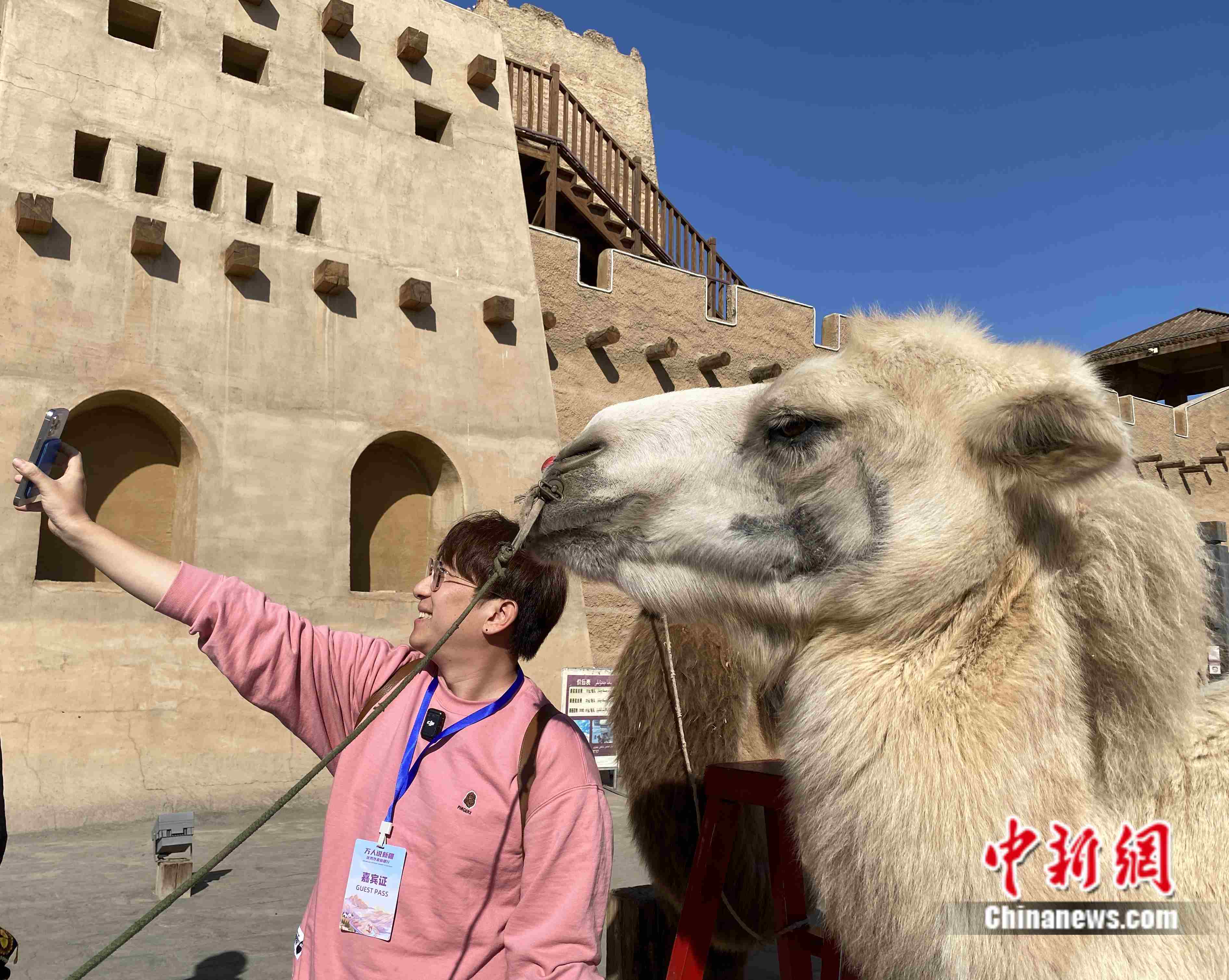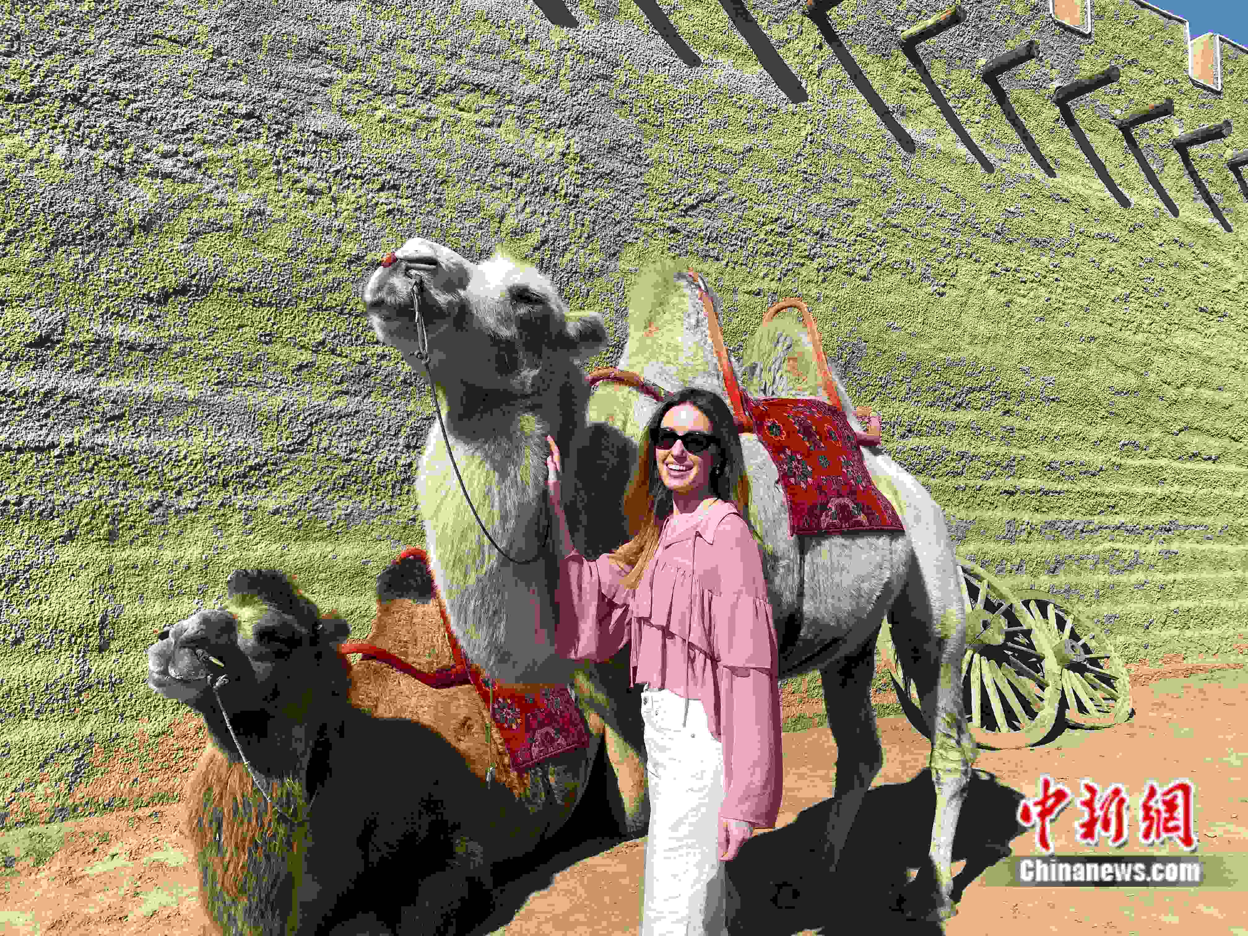 丽娜在景区和骆驼合影留念。苏亦瑜 摄