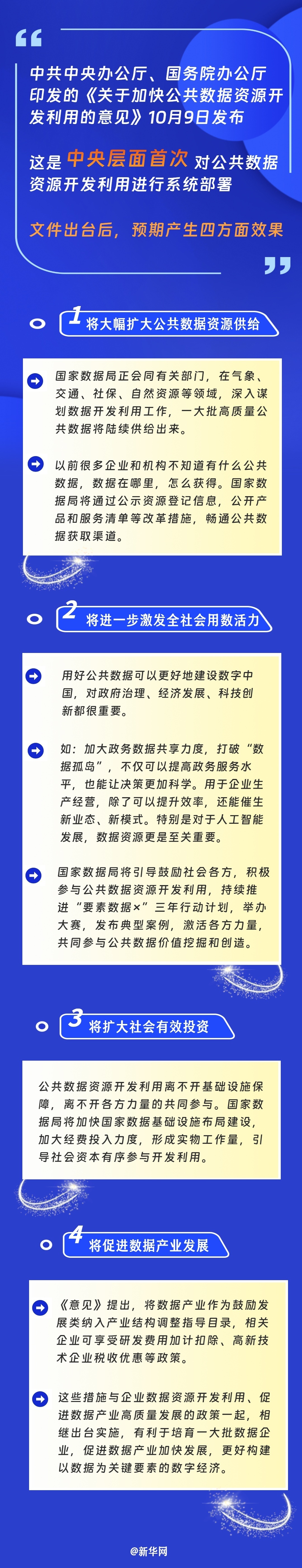 中共中央办公厅、国务院办公厅印发的《关于加快公共数据资源开发利用的意见》10月9日发布,这是中央层面首次对公共数据资源开发利用进行系统部署。