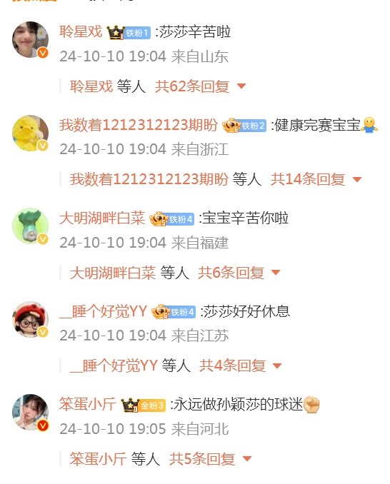 10月10日,孙颖莎在个人社交平台发文: