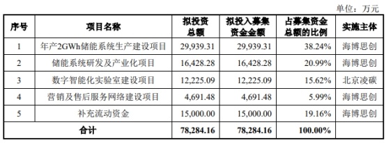 海博思创拟在科创板募资78,284.16万元,用于年产2GWh储能系统生产建设项目、储能系统研发及产业化项目、数字智能化实验室建设项目、营销及售后服务网络建设项目及补充流动资金。