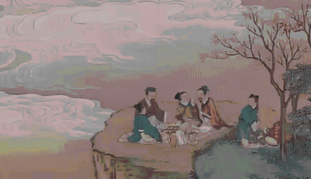 兴致高昂的才子们三五相邀,同饮菊酒,共赏黄花,伴着酒意,吟诗赋词,共同度过这美好的一天。