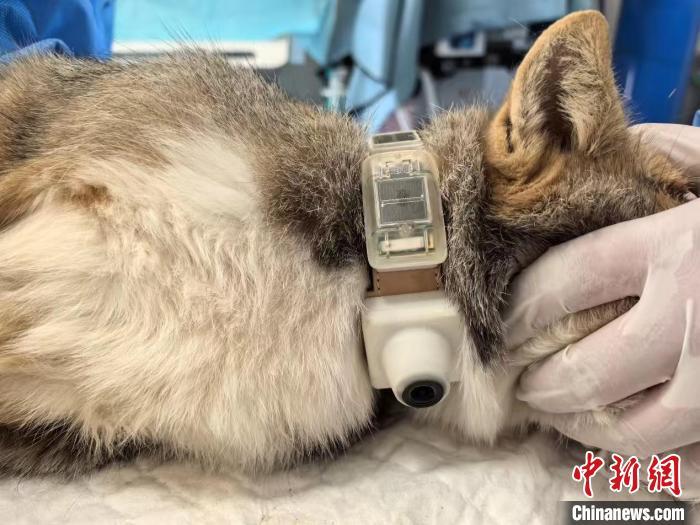 9月26日,科研工作人员正在为“狐三条”佩戴卫星定位项圈。 (西宁植物园野生动物救护繁育中心供图)