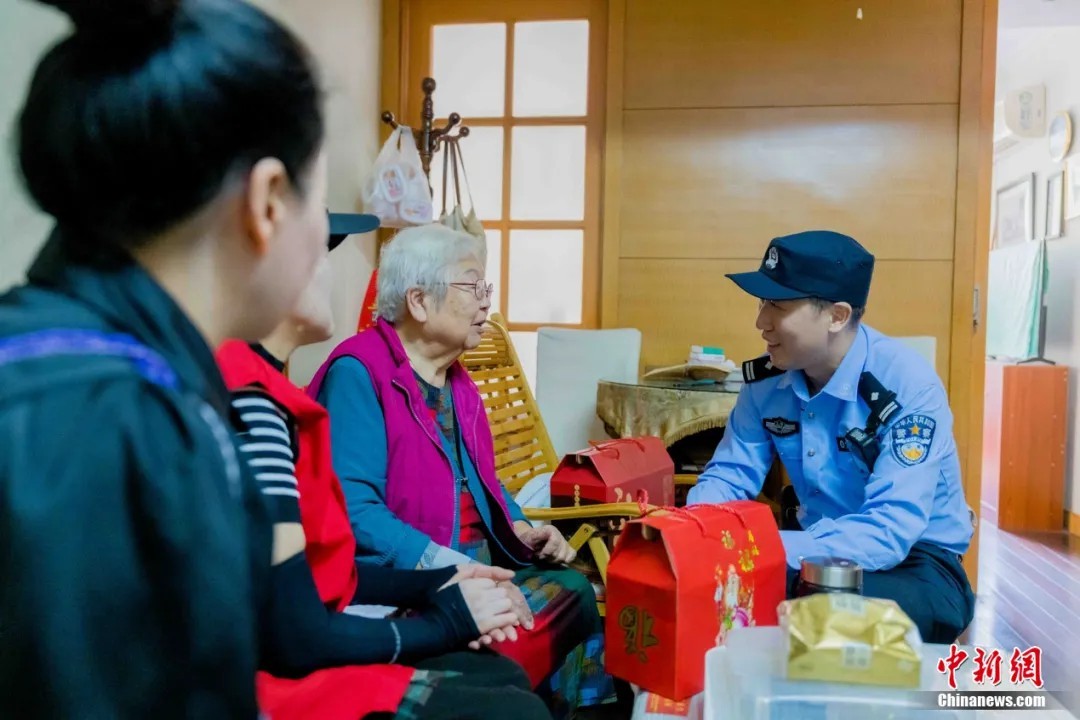 姜经纬表示,这段经历也让他更关注自己辖区内的老人。图为姜经纬拜访辖区内的老年居民。上海市公安局浦东分局供图