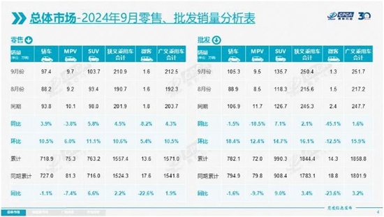 今日(10月12日),中国汽车流通协会乘用车市场信息联席分会发布数据,9月,国内狭义乘用车批发、零售销量皆实现同环比双增长。其中,批发250.4万辆,同比增长2.1%,环比大幅增长16.1%,创造历史同期新高。零售规模年内第二次摸高200万辆上方,并创造年内新高,共零售210.9万辆,同比增长4.5%,环比增长10.6%。