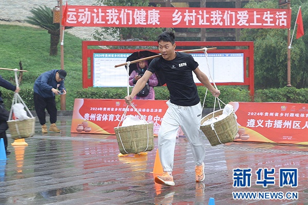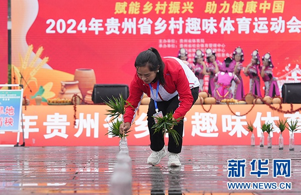 新华网贵阳10月12日电(卢志佳)喜看稻菽千重浪,花繁叶茂扮金装。10月12日,以“赋能乡村振兴 助力健康中国”为主题的2024年贵州省乡村趣味运动会总决赛在遵义市播州区开赛。来自全省各市州12支代表队的160余名乡村运动员参赛。