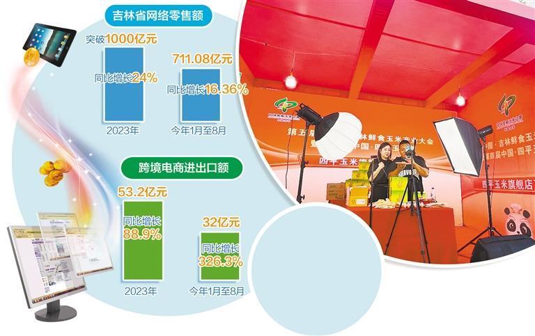 近日,第四届中国新电商大会在吉林省长春市举办。数据显示,2023年,吉林省网络零售额突破1000亿元,同比增长24%,增速居全国第一位。今年1月至8月,该省网络零售额711.08亿元,同比增长16.36%;跨境电商进出口额32亿元,同比增长326.3%。