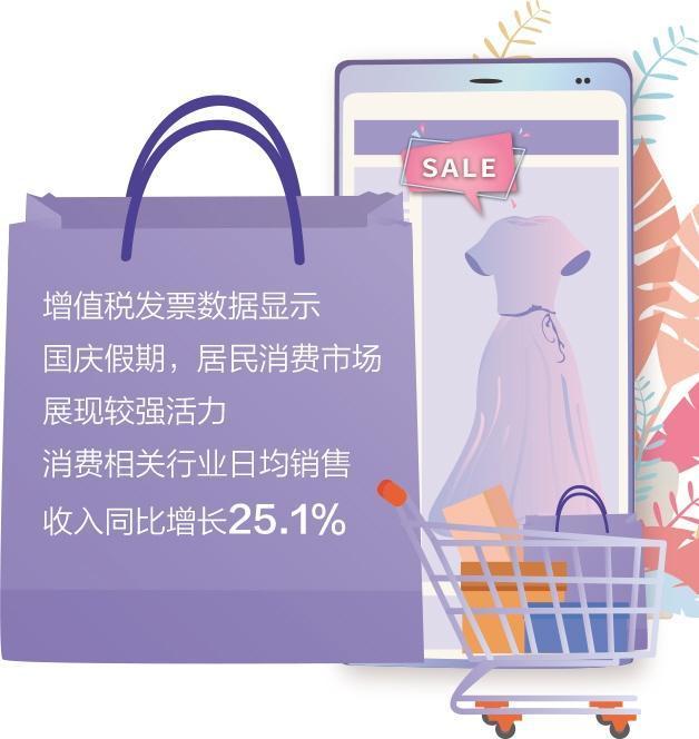 国家税务总局公布的增值税发票数据显示,国庆假期,居民消费市场展现较强活力,消费相关行业日均销售收入(下同)同比增长25.1%。
