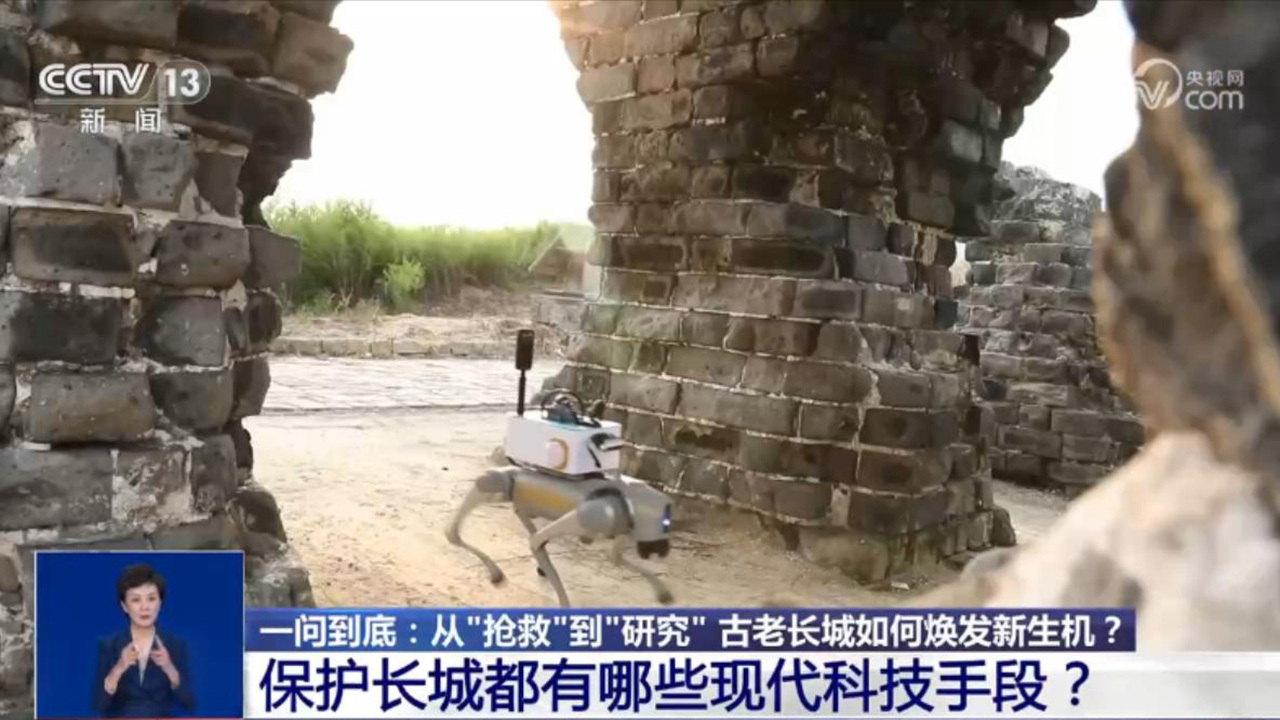 另外,巡护机器人,可以在长城墙体、敌楼中独立行走,融合了360度成像、激光雷达、红外监测等先进技术,将有效提升长城巡护的效率和质量。