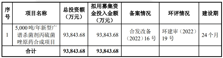久易股份原拟在深交所创业板发行不超过1,792.50万股,占发行后总股本比例不低于25%,全部为发行新股,不涉及股东公开发售股份。公司原拟募集资金93,843.68万元,用于5,000吨/年新型广谱杀菌剂丙硫菌唑原药合成项目。