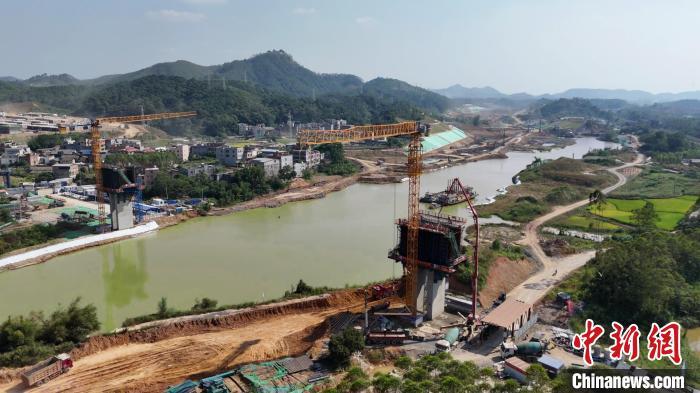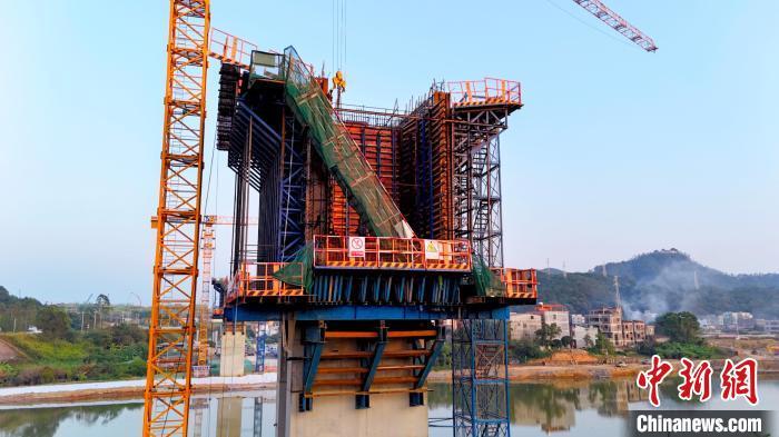 中新网南宁10月14日电(记者 杨陈)平陆运河集团14日介绍,近日平陆运河沿线跨线刚构桥首个0号块——沙坪河大桥12号主墩航道右岸0号块浇筑完成,标志着平陆运河沿线连续刚构桥迈入上部结构施工新阶段。