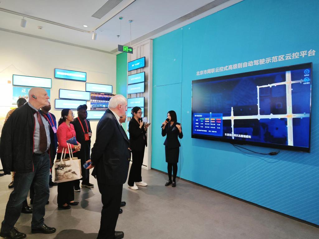 10月10日,国际友人在北京“两区”展示会客厅了解北京城市副中心规划建设情况。新华社记者刘杨 摄