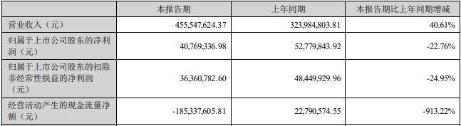 据广联航空2024年半年度报告,2024年上半年,公司实现营业收入4.56亿元,同比增长40.61%;归属于上市公司股东的净利润4076.93万元,同比减少22.76%;归属于上市公司股东的扣除非经常性损益的净利润3636.08万元,同比减少24.95%;经营活动产生的现金流量净额为-1.85亿元。