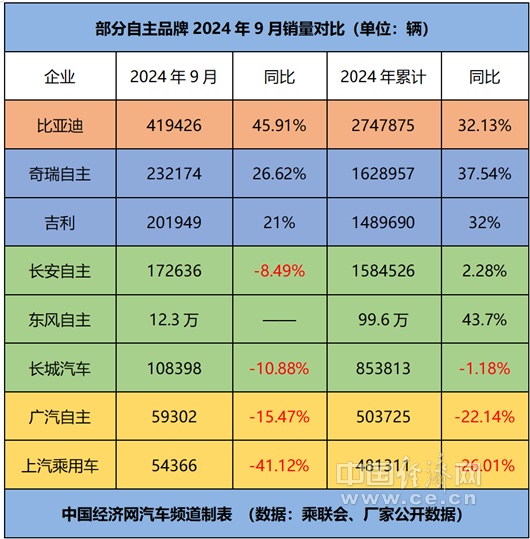 在新能源和汽车出口的双轮驱动下,“自主五虎”全都迎来了“金九”行情。5家车企在9月的销量全都突破10万辆的关口,比亚迪、奇瑞自主、吉利更是以超20万辆的成绩,构建起全新的“自主三强”格局。