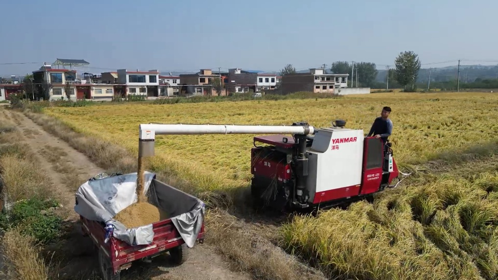金秋十月,稻花飘香。在陕西西安终南山下,1500余亩水稻陆续成熟进入丰收季,大片金黄的水稻散发着阵阵清香。