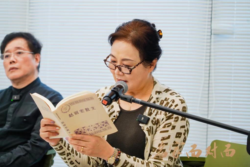 著名作家赵丽宏有独特文字魅力的散文名篇,结合了国家一级演员蔡金萍等朗诵名家的诵读,面对面地让参与者沉浸式进入散文世界。作家分享了创作《风敲打着窗》《给母亲打电话》等经典篇目的心路历程,谈及写作背后的生活点滴,打动了在场的每一位市民。