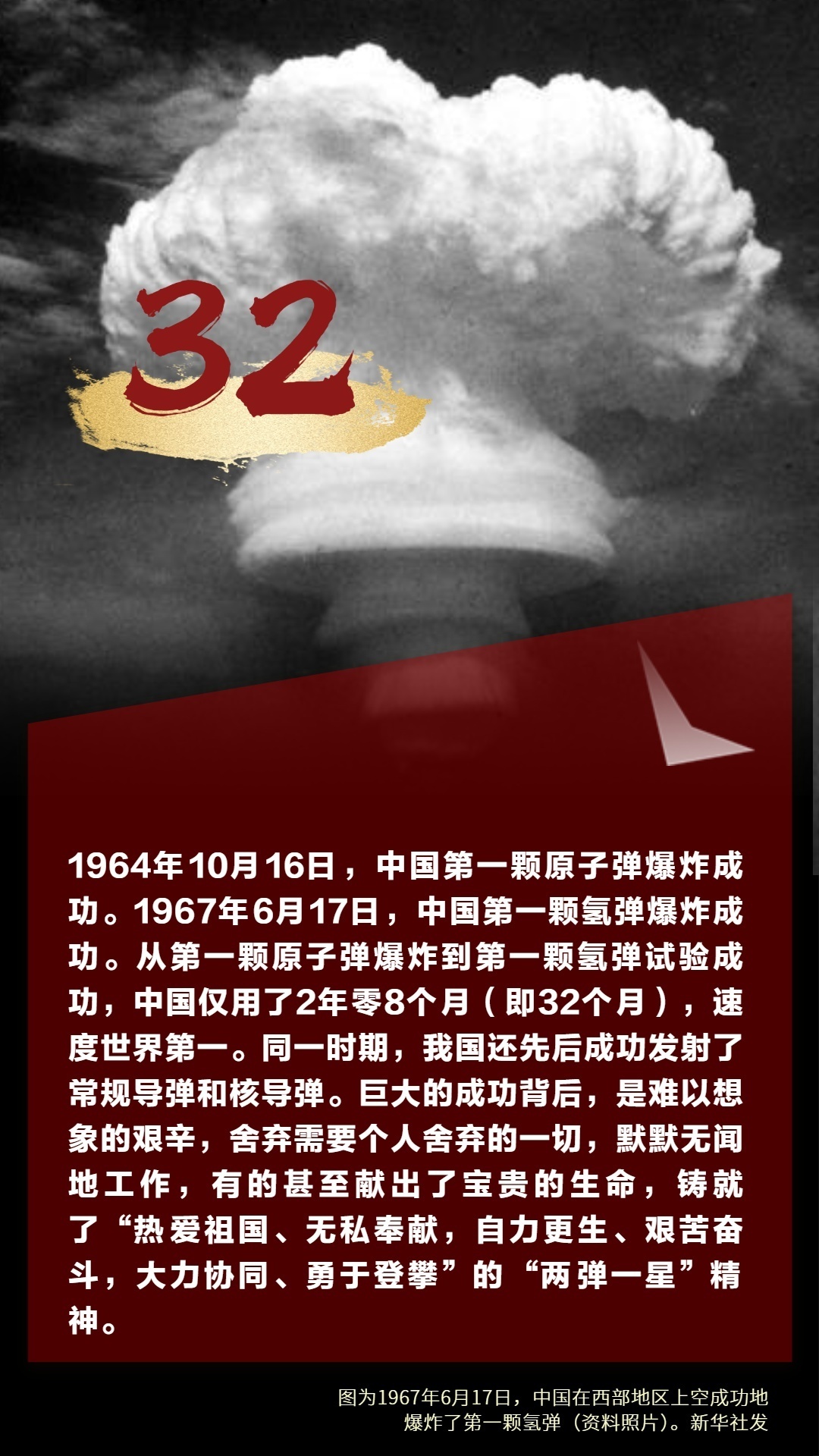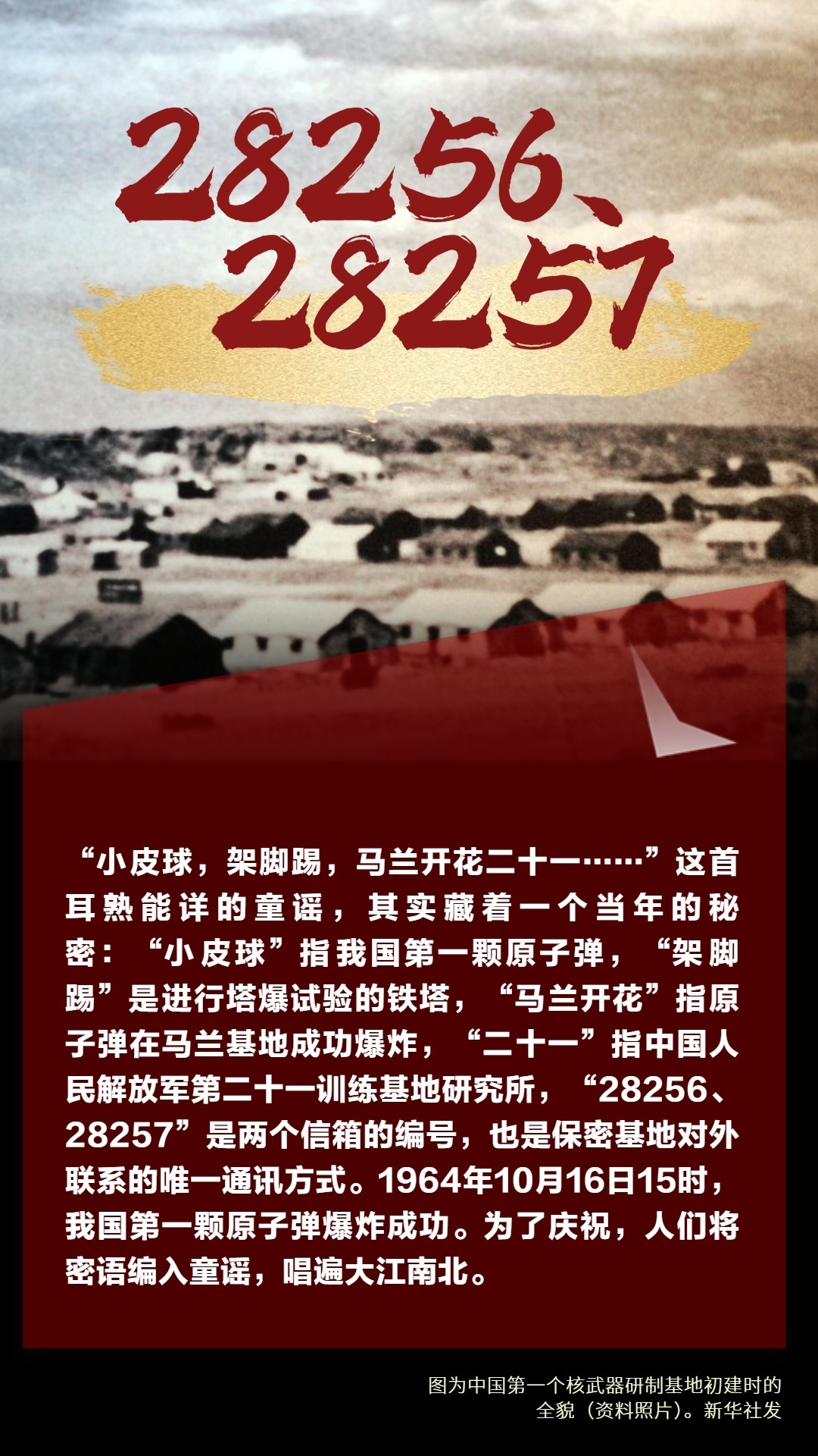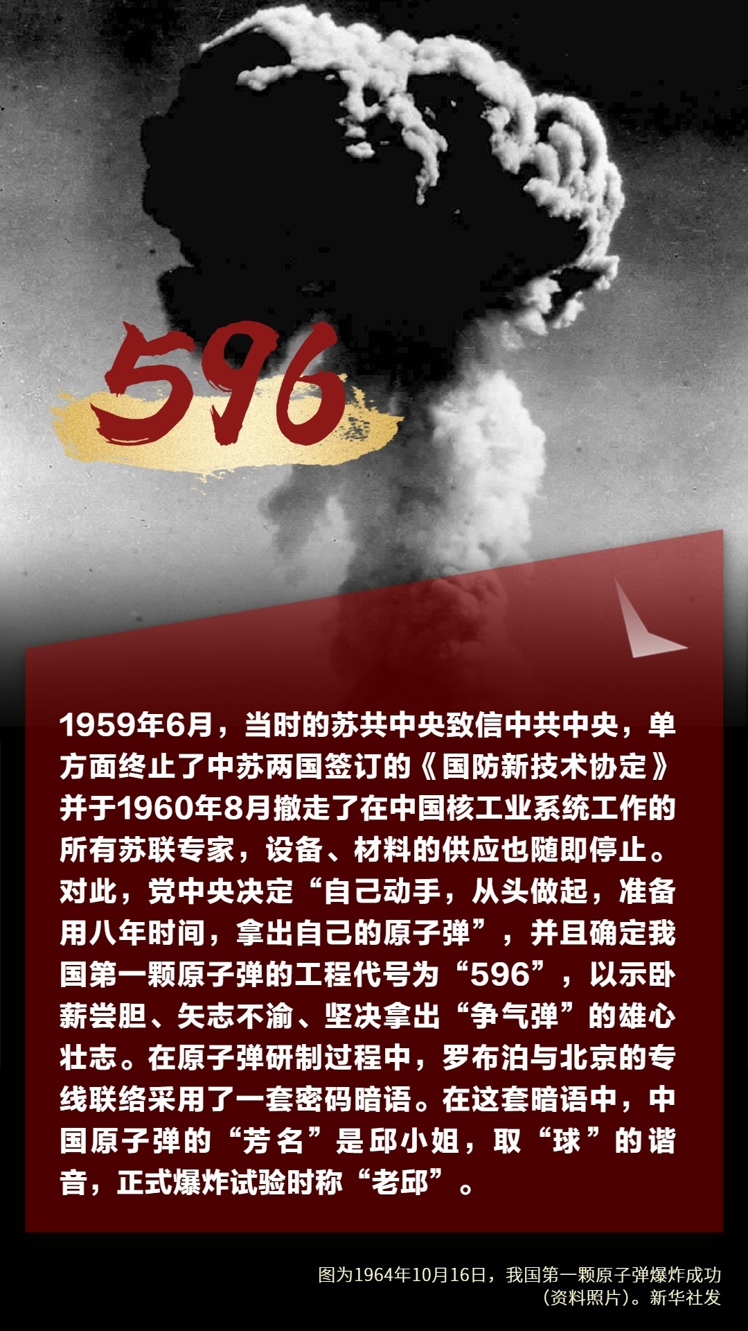 1964年10月16日,中国第一颗原子弹爆炸成功。除了我们耳熟能详的人和事,在研究原子弹并将其成功引爆这个长长的链条上,有不少专属数字和蕴含特殊意义的数字。如596、221、28、28256、28257等。今天是中国第一颗原子弹爆炸成功60周年,让我们一同探寻那些数字背后的故事,重温那段峥嵘岁月里的激情与梦想,致敬所有为“两弹一星”事业无私奉献的英雄!