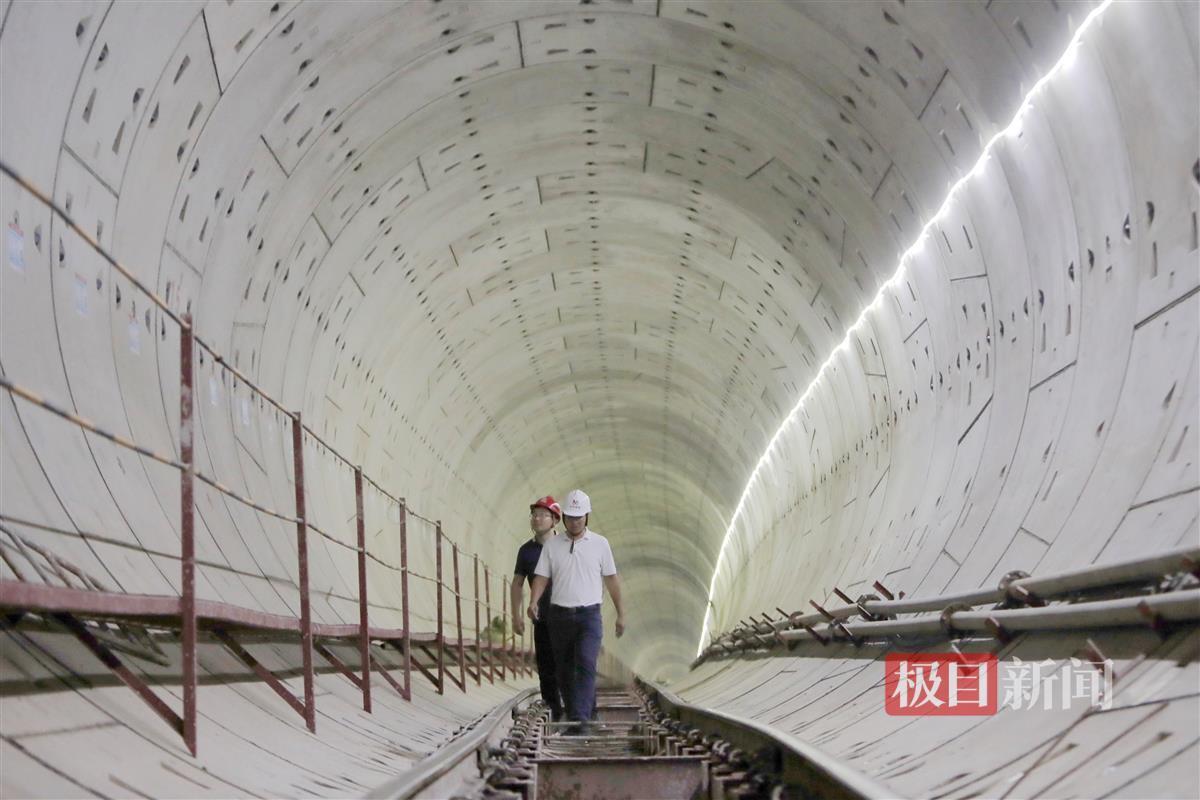 在江楚大道站,现场正在进行车站附属结构施工。步入地下车站,只见主体结构已完成,作业人员正进行收尾工作。沿着车站查看,整个站内侧墙、柱子表面平滑如镜颇具“工业风”。