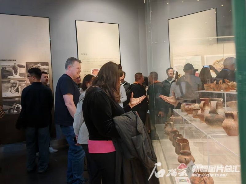 10月15日,出席第六届世界媒体峰会的部分嘉宾走进吐鲁番博物馆。石榴云/新疆日报记者 王娜摄