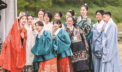 “穿着传统服饰,常常伴随着对古代礼仪和文化习俗的学习和效仿,如礼茶、抚琴等,年轻人得以更深入地了解和体验中华传统文化的丰富内涵,接受传统文化的熏陶。”韩丹说。