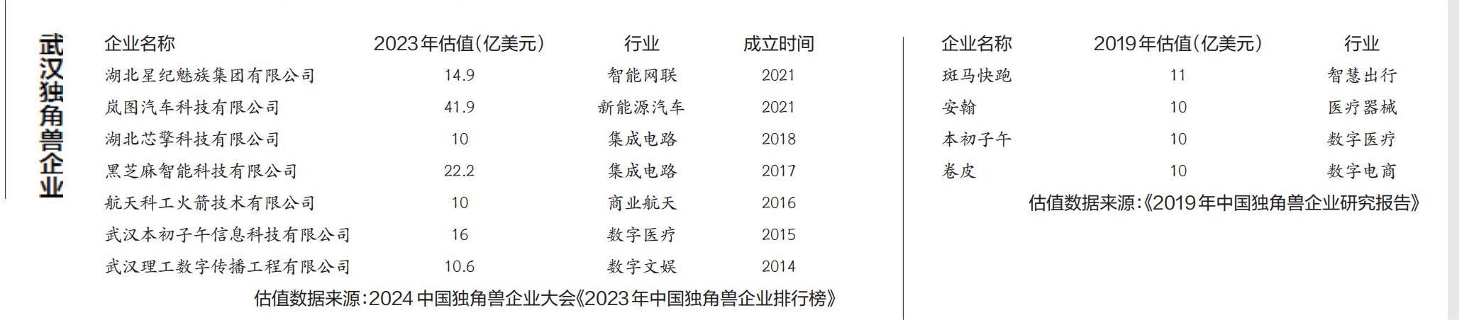 去年11月,武汉市政府办公厅印发《武汉市加快独角兽企业培育三年行动计划(2023—2025年)》,提出力争到2025年,累计培育独角兽企业20家以上、潜在独角兽企业30家以上,将重点挖掘光电子信息、人工智能、量子计算等新赛道潜力企业,建立独角兽和潜在独角兽企业库。