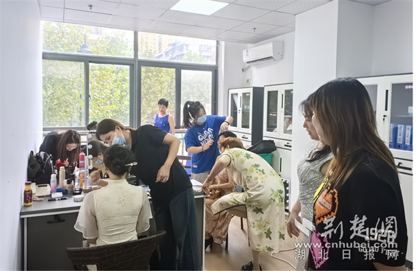 化妆师正在为前来拍摄艺术照的居民化妆。通讯员供图