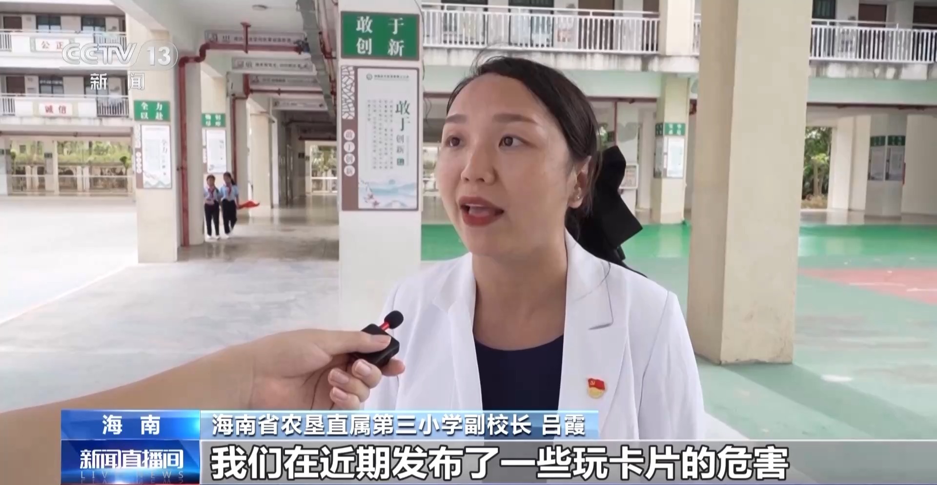 海南省农垦直属第三小学副校长 吕霞:我们在近期发布了一些玩卡片的危害,同时我们学校也开展了多样文体活动,希望通过文体活动转移孩子的注意力,能更多去参与到健康积极的一些活动当中。也是希望市场部门能够加大力度,对于孩子有危害的这些玩具也好,卡片之类也好,能够更好地管理。