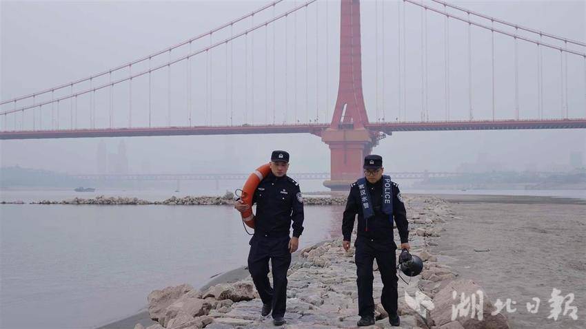 水上分局巡防检查站民警李丕森介绍,“江心小路”是修建鹦鹉洲长江大桥时同期建造的丁字坝,作用是让江水集中利于行船,维护长江主航道的稳定和安全,只有在长江水位低于15米时才会显露于水面。
