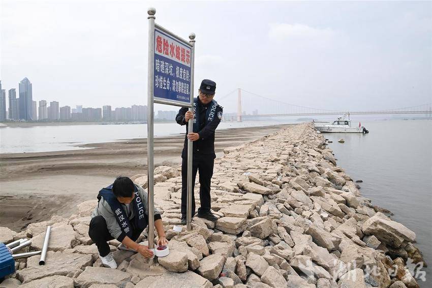 近期,武汉市公安局水上分局不仅在丁字坝上竖立了安全警示牌,还调整了周边摄像头的监控范围,对准丁字坝区域进行实时监控,一旦人流量过多,水警将携带救生装备在丁字坝上开展步巡,及时进行劝导和救助。