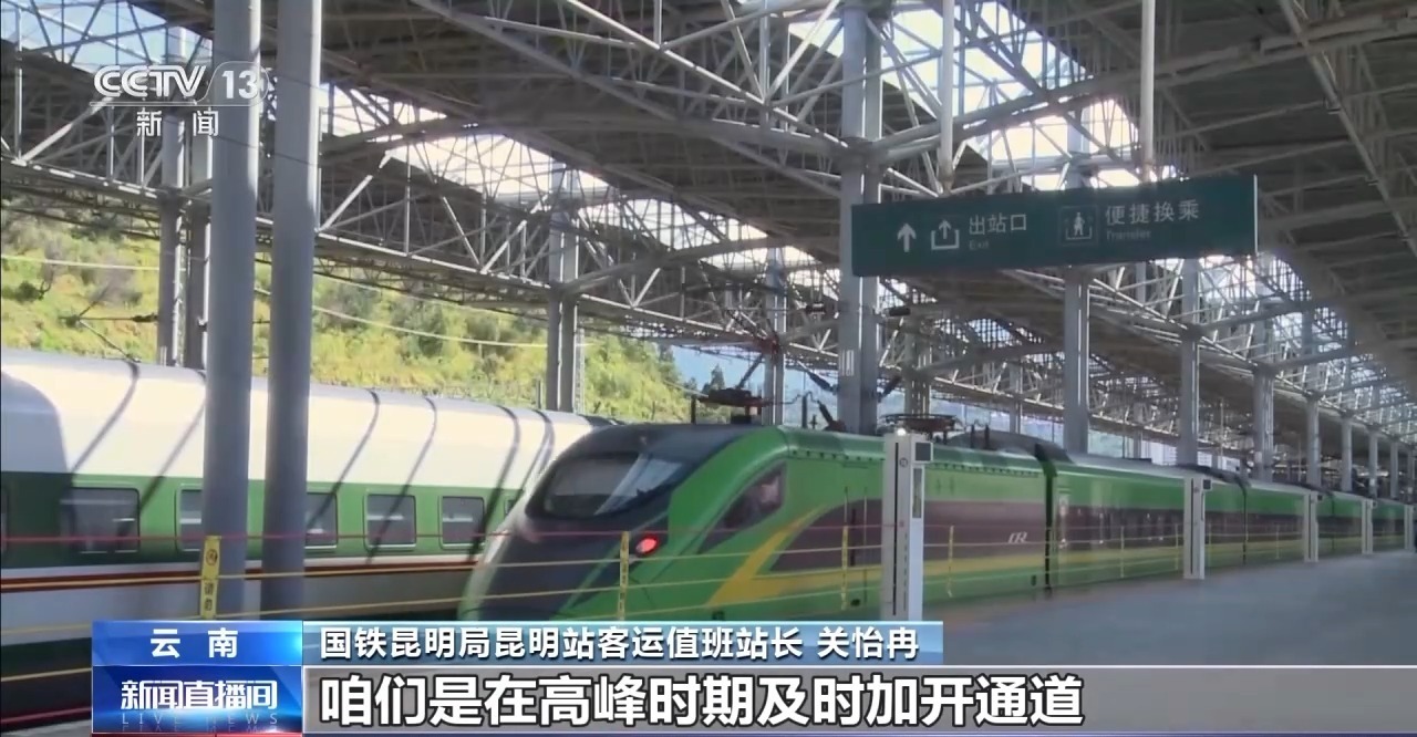 国铁昆明局昆明站客运值班站长 关怡冉:国庆过后,针对大理、丽江、香格里拉方向错峰出行的旅客比较多,针对这个情况,我们在高峰时期及时加开通道,做好服务措施。