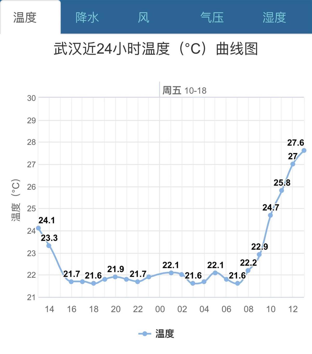 气温一路高涨:武汉早间7时是22℃的凉爽,午后1时就达到27.6℃,“好热啊!这夏天还没走远吗?会降雨降温吗?”今天的天气走势,令邓女士陷入疑虑之中。