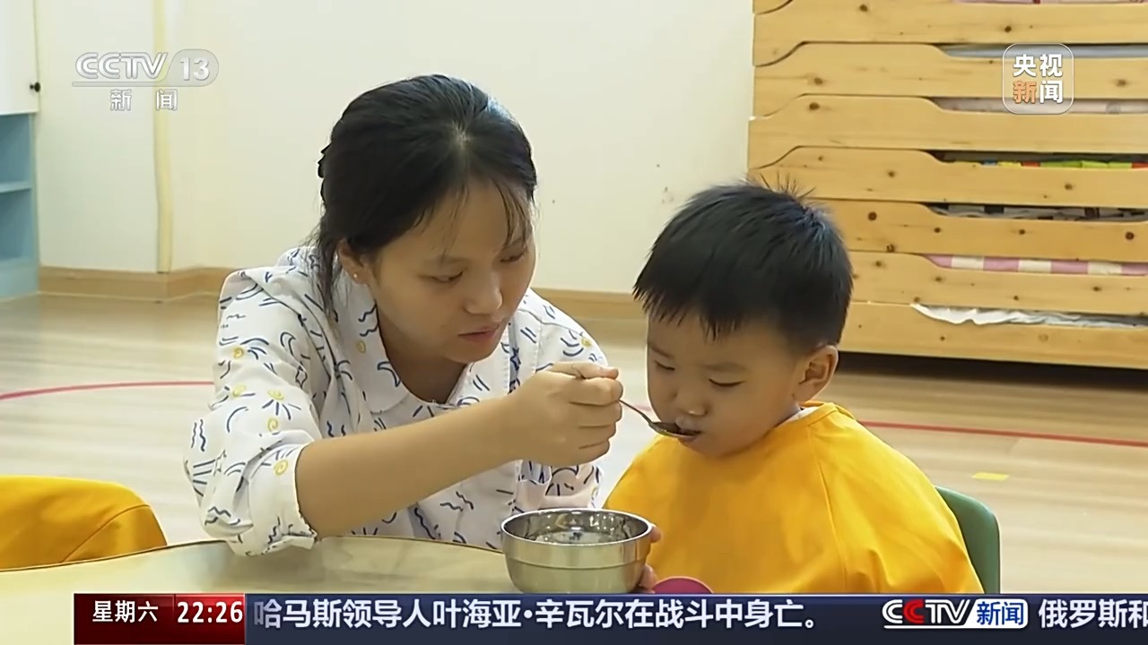 随着晨检的结束,孩子们便可以到食堂享用早餐。每周的食谱都会根据孩子生长发育的需求进行调整。除了入园体检,以及由营养师制定的食谱外,永川区妇幼保健院托育中心与其他传统托育中心不同的是,配有医师、推拿师、营养师、治疗师、评估师等8师共育服务团队,同时还定期为孩子们进行生长监测以及发育评估、五官保健等活动。
