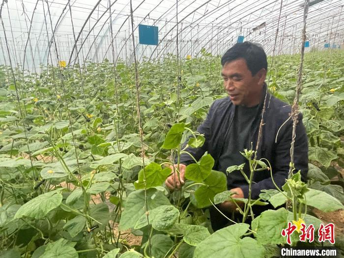 图为刘永兵在黄瓜棚中。张远 摄