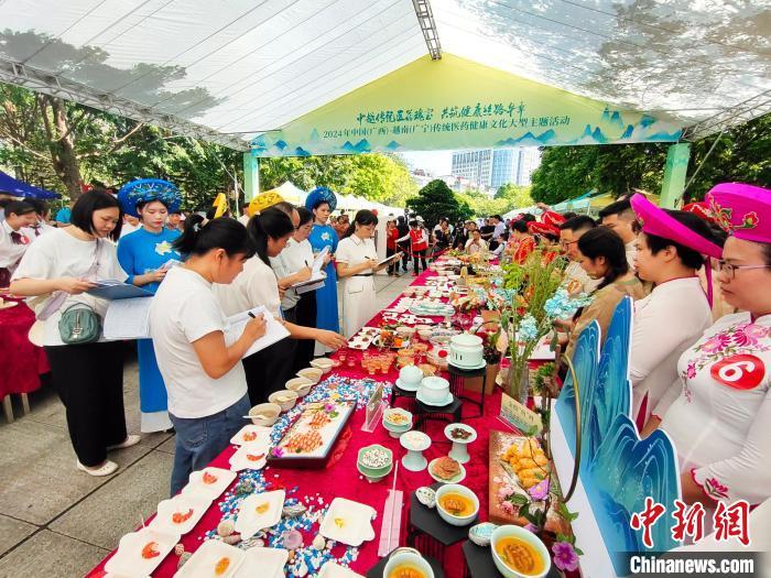 10月22日,2024年中国(广西)—越南(广宁)传统医药健康文化大型主题活动在广西东兴市举行。图为国际药膳友谊赛现场。中新社记者 黄艳梅 摄