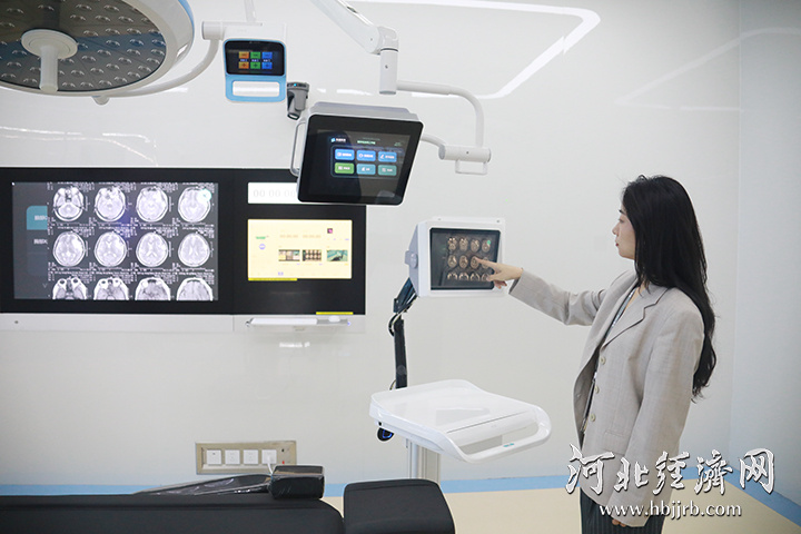 在非接触式数字化手术室,点击空中图像即可操作。河北经济日报记者 刘朋朋 摄