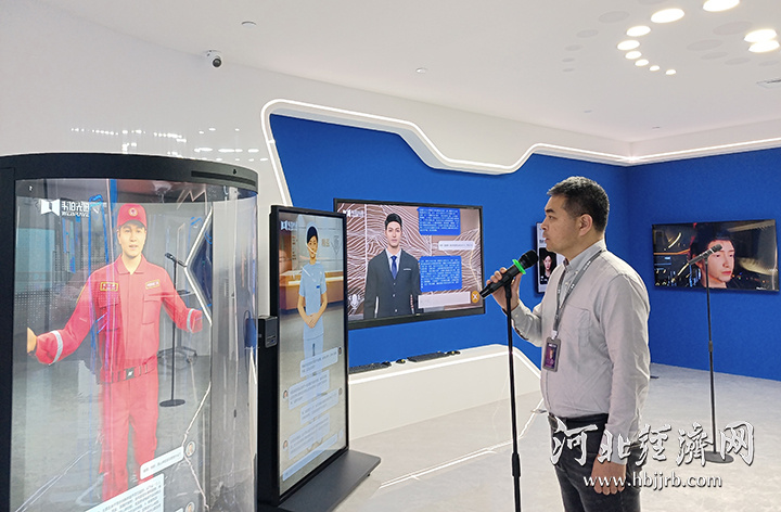 展厅相关负责人和AI 数字人进行互动。河北经济日报记者 刘朋朋 摄