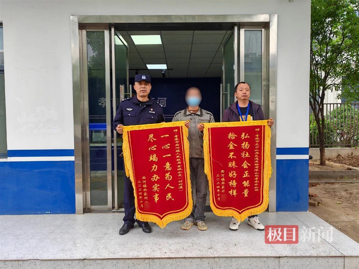 10月21日,杨先生特意订制锦旗来到派出所,为司机拾金不昧的精神、派出所民警的行动力表达心中的感激。