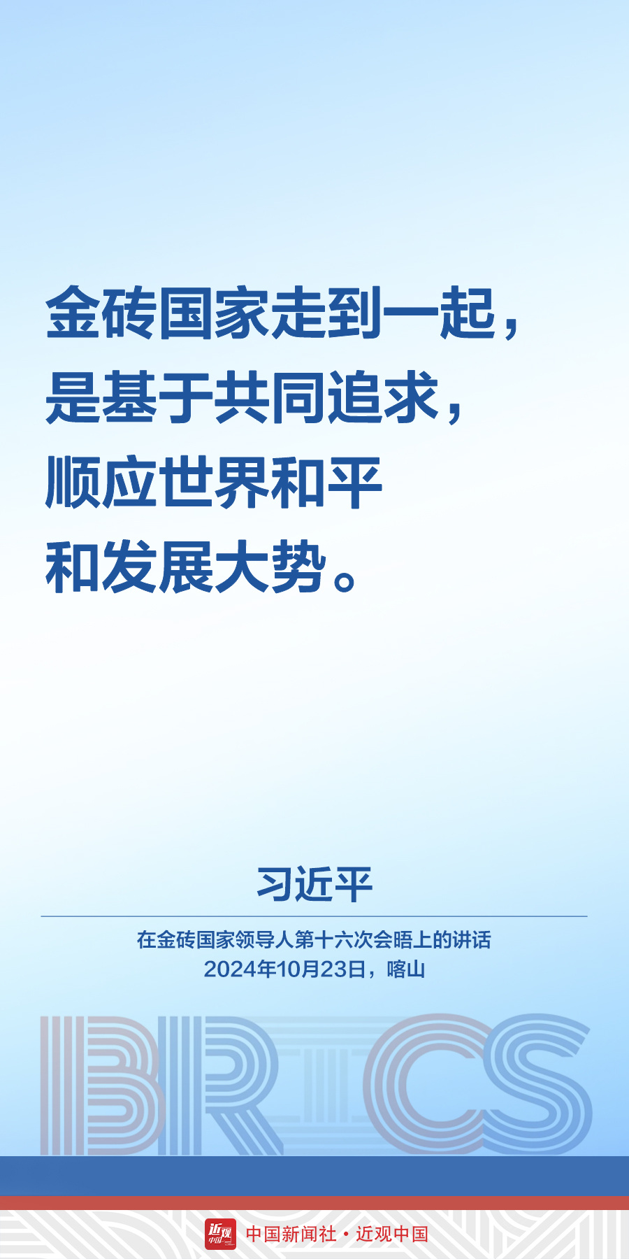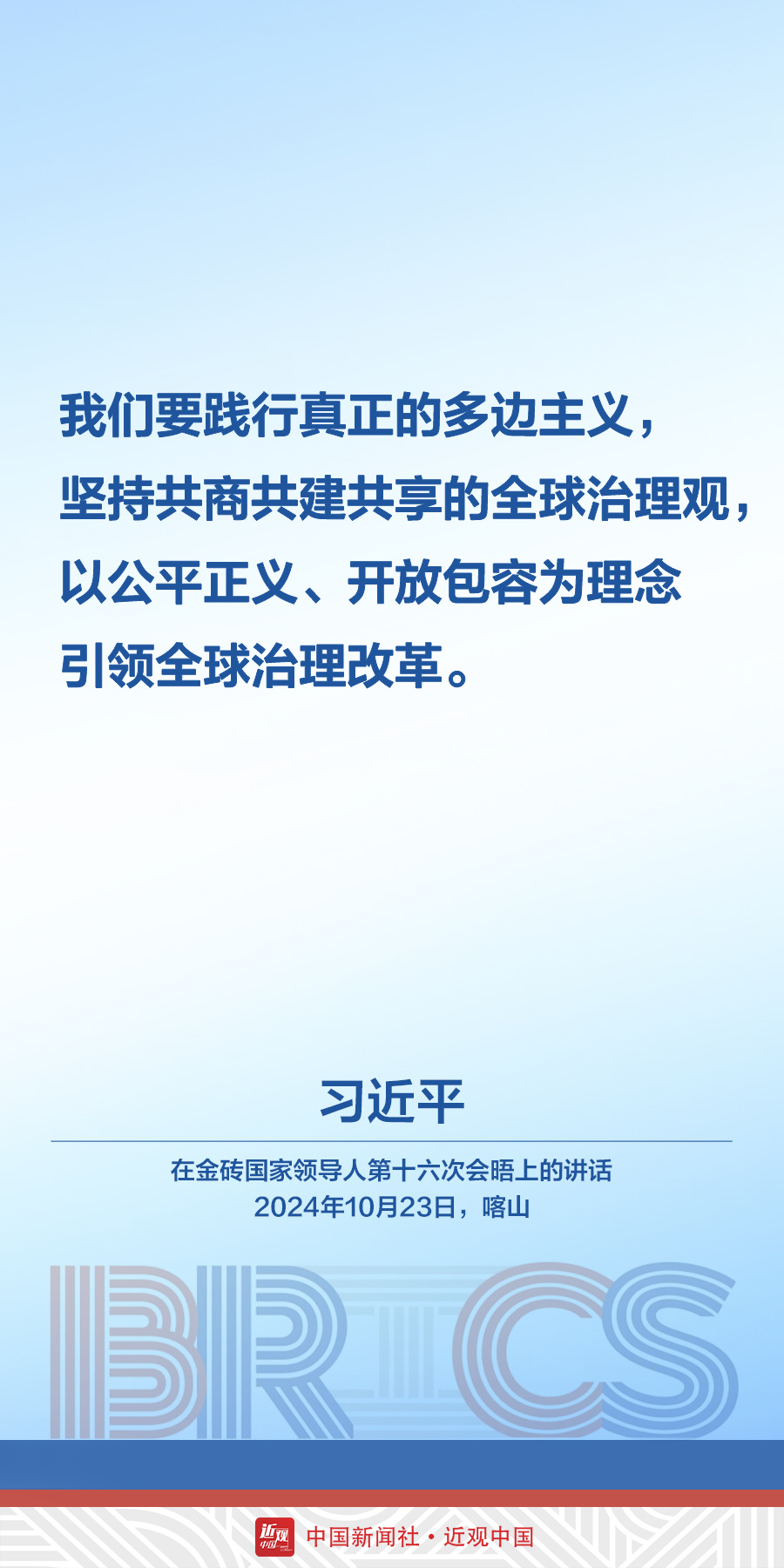 当地时间10月23日,中国国家主席习近平在俄罗斯喀山出席金砖国家领导人第十六次会晤。他在讲话中发出中国声音——