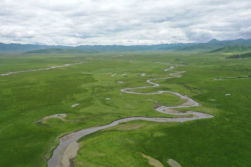 玛曲县阿万仓湿地(无人机照片)。新华社记者 文静 摄