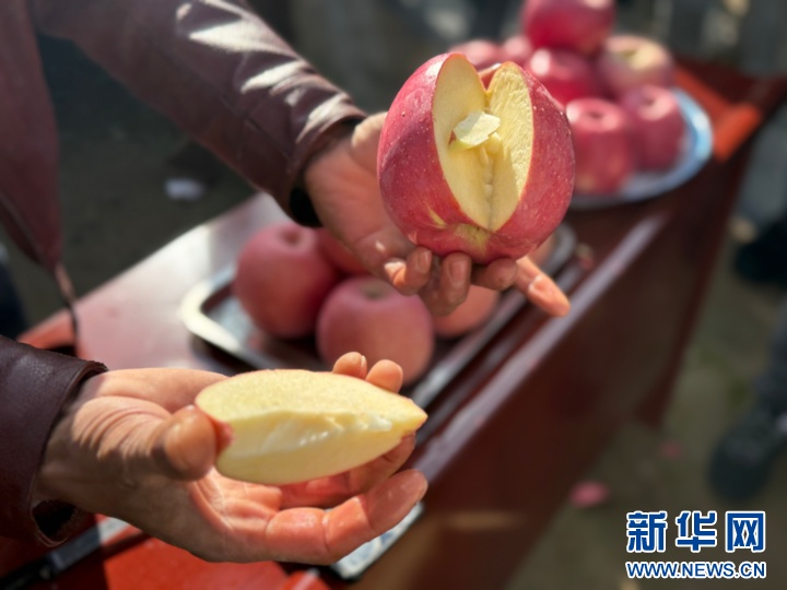 说到这里,父子俩切开了红彤彤的苹果,甜蜜的汁水顺着指尖流下,他们热情地邀请大家品尝这改变他们生活的苹果。