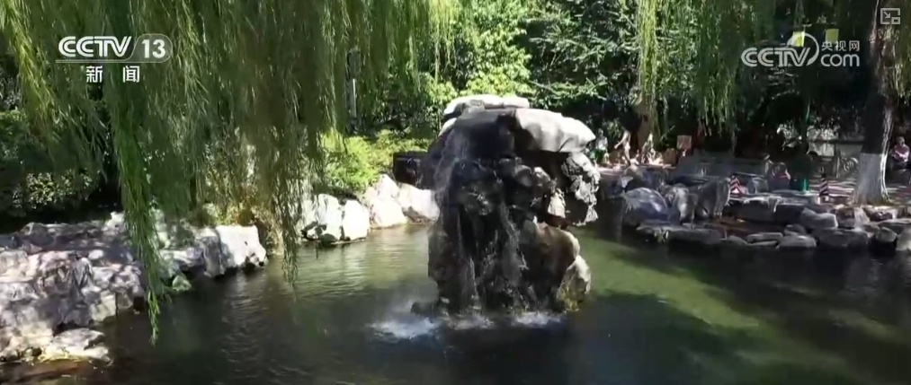 在黑虎泉泉水直饮点,当地的市民和游客都会拿着大大小小的瓶子来接水饮用。据说,这里面的泉水常年恒温18摄氏度左右,清冽甘甜。
