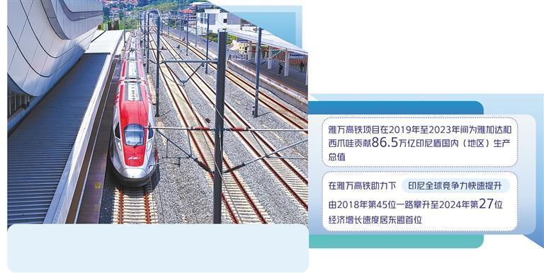 印尼前总统佐科多次乘坐雅万高铁,对安全平稳舒适的乘坐体验给予高度评价。印尼方5次向运维联合体发出表扬信,对运营维护、人员培训等方面的工作予以肯定。有关数据显示,在雅万高铁助力下,印尼全球竞争力快速提升,由2018年的第45位一路攀升至2024年的第27位,经济增长速度居东盟首位。