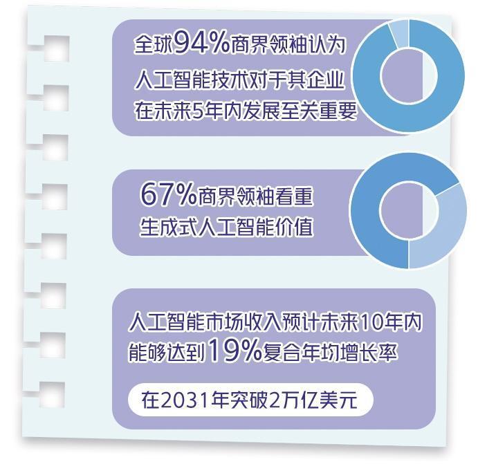 人工智能技术无处不在。报告指出,诞生于大概70年前的“人工智能”概念近年来备受关注,尤其是自2022年底生成式人工智能取得较大发展以来,大量机构都在研究其潜力。该技术按照人们的需求产出文字、图像、视频的能力,使其在医疗卫生、金融、娱乐等领域得到了广泛应用。全球94%的商界领袖认为,人工智能技术对于其企业在未来5年内的发展至关重要,67%的商界领袖看重生成式人工智能的价值,正在加大投资。人工智能市场收入预计未来10年内能够达到19%的复合年均增长率,在2031年突破2万亿美元。同时,定制化的人工智能技术满足了不同领域的特定需求,未来还有巨大潜力对卫生、教育、能源、农业、金融等行业带来积极影响。