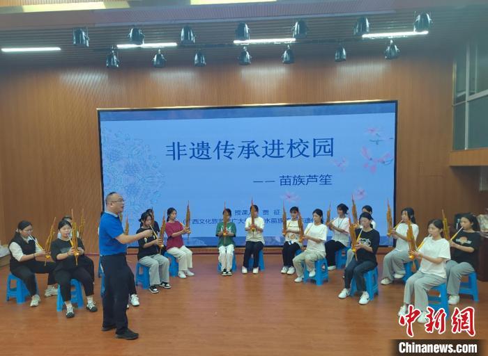 “学校里有来自苗族、侗族、壮族、汉族等各民族学生,通过让孩子们近距离接触、直观感受芦笙非遗传统技艺之美,不仅能丰富学生校园文化生活,也能深化学生对民族文化知识、民族团结进步的认识。”贾征说。