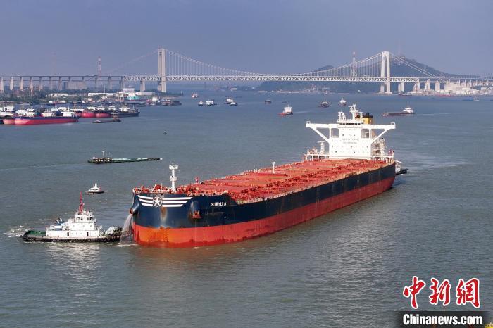 10月25日,希腊籍散货船“西比拉”轮安全靠泊镇江港。中新网记者 泱波 摄