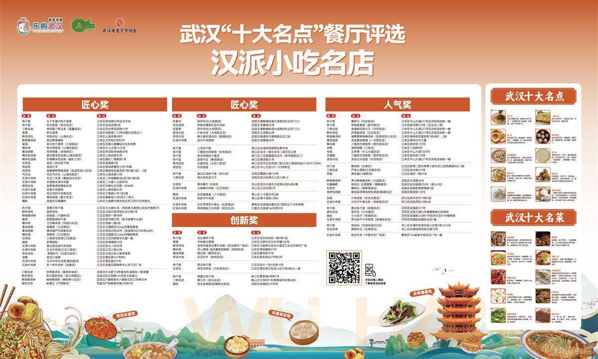 本次活动为市民现场发放了最新版的武汉“十大名菜十大名点”美食地图。上图的近300家餐厅中,既有百年传承的老字号、创新融合的新生代,也有打卡人气店、特种兵“排队王”以及武汉人的宝藏心水店等。
