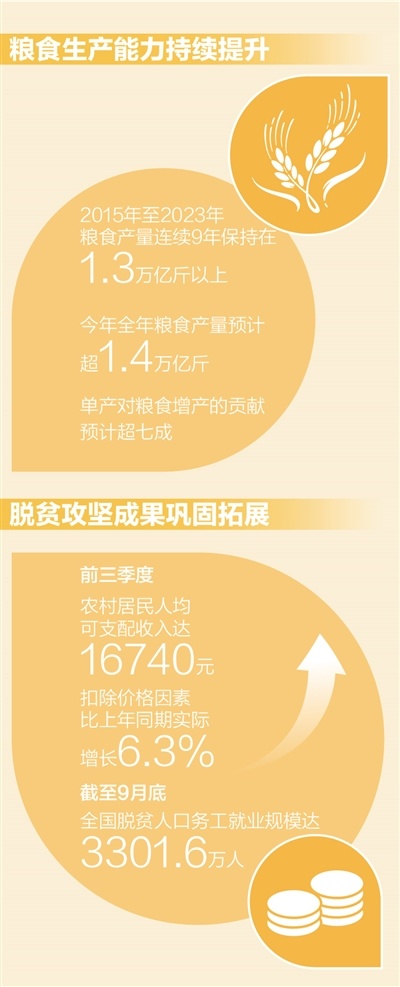 粮食和重要农产品供给保障进一步夯实,乡村全面振兴取得积极进展,农业强国建设迈出坚实步伐……10月25日,国务院新闻办举行新闻发布会,介绍今年前三季度农业农村经济运行情况。农业农村部副部长张兴旺在会上表示,前三季度农业农村发展保持稳中向好、稳中提质的势头,为巩固和增强经济回升向好、推动高质量发展提供了有力支撑。