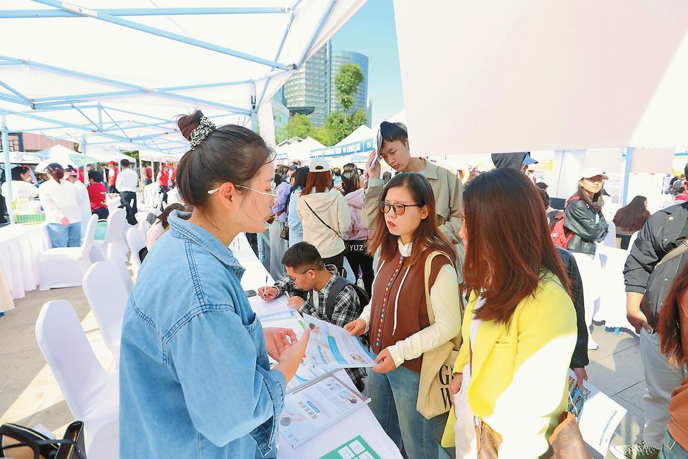 图为求职者在招聘现场求职。记者 陈飞 摄