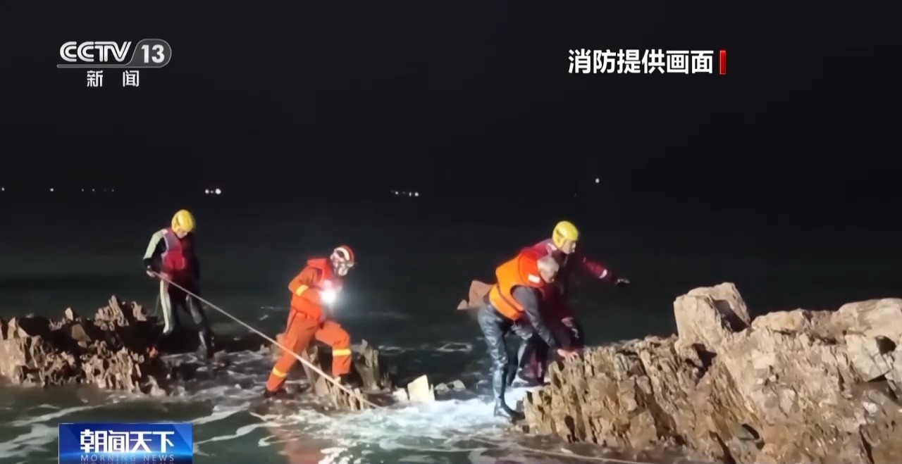 此时周围海浪翻腾,2名救援人员经多次尝试才终于抵达老人身边,在帮他穿戴好救生衣、绑好安全绳后,再在岸边人员的帮助下,将老人安全护送上岸。