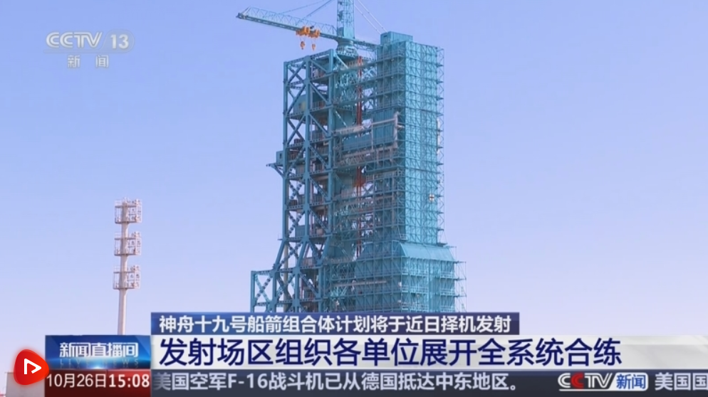 央视网消息:神舟十九号船箭组合体已于本月22日转运至发射区,计划将于近日择机发射。10月26日,发射场区组织各单位展开全系统合练,检验各系统在发射流程当中的可靠性和安全性。